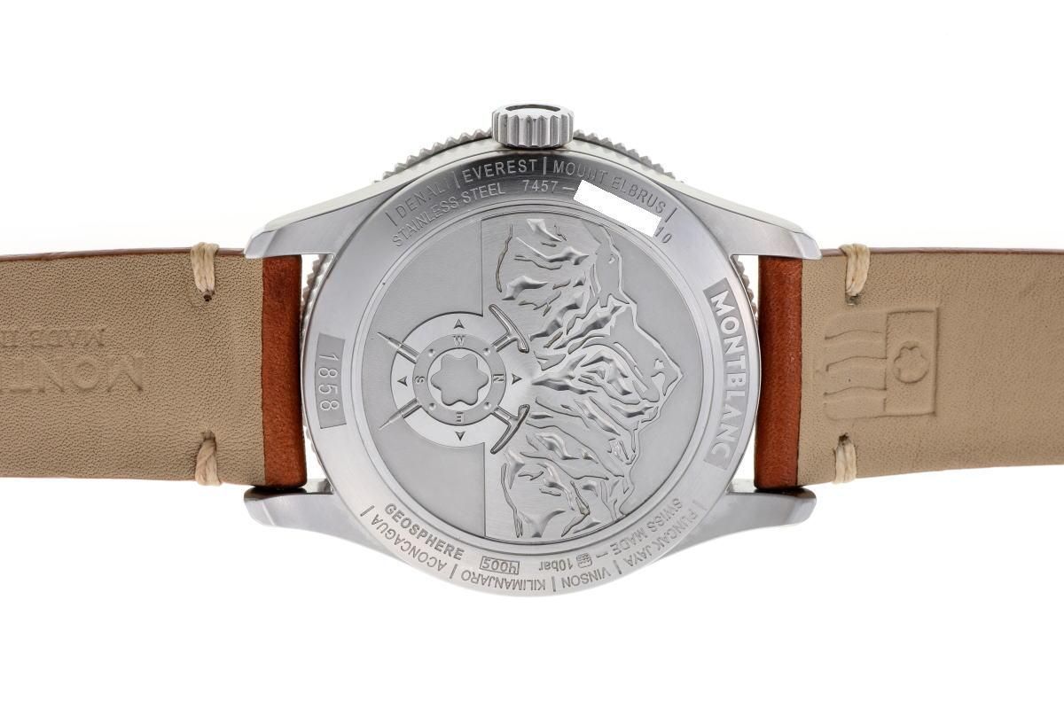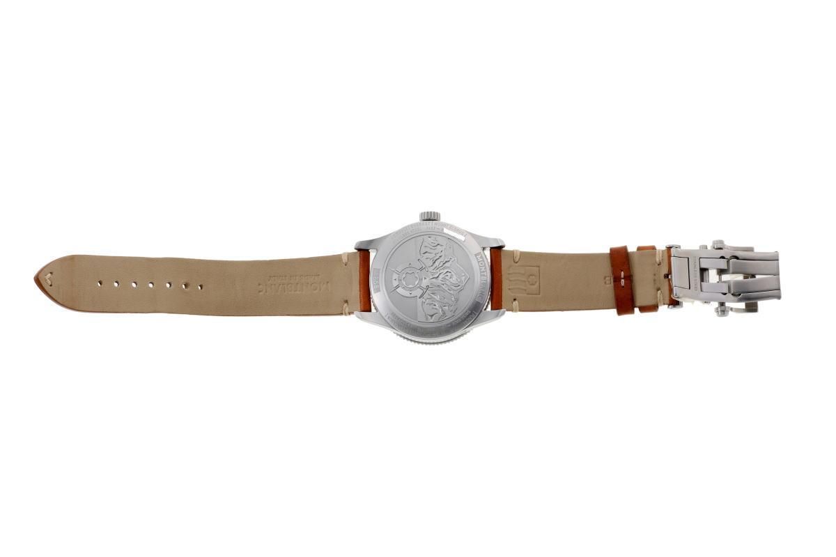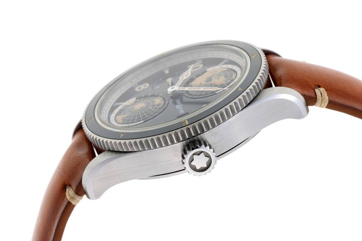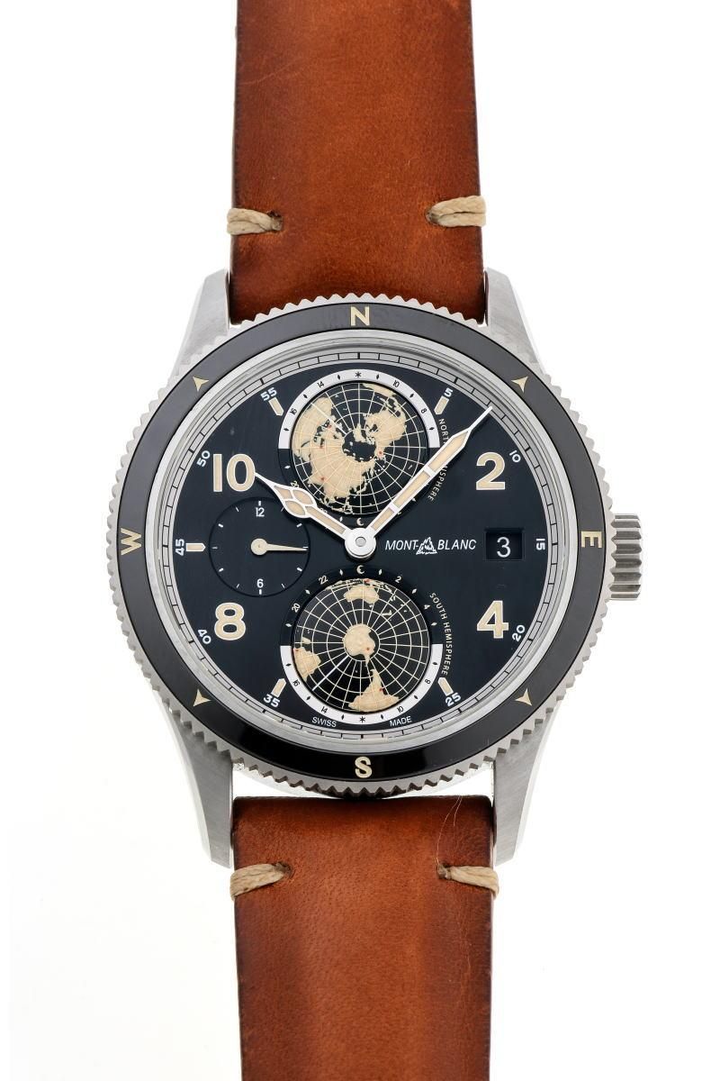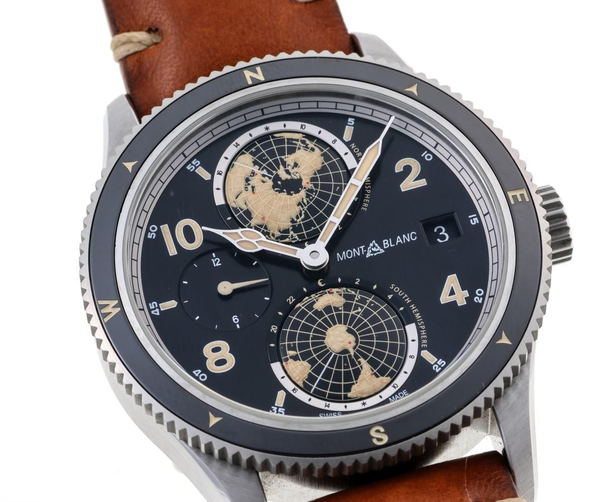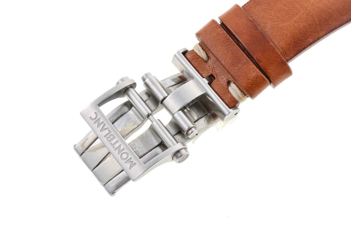 | コメント | 目立つダメージはありません。 - モンブラン1858の機械式ラウンドウォッチ。 10時側ケースサイドのプッシュボタンで デュアルタイムの針を操作できます。 |